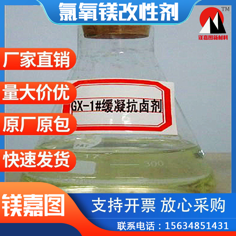 GX-1#缓凝抗卤剂是我公司的另一拳头产品。GX-1#缓凝抗卤剂可有效延缓高温(25~40℃)生产环境下菱镁水泥的初凝时间,提高料浆的可操作性能。同时GX-1#缓凝抗卤剂可以改善5•1•8晶种的堆积状态,堵塞体系中的毛细管道,从而达到辅助抗卤的目的。具体可参考《GX-1#改性剂的性能指标》一文。