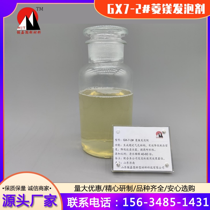 * 粘度效应: 发泡剂溶液本身或与菱镁浆体混合后,可能增加体系的粘度。较高的粘度阻碍了气泡壁中液体的排液速度(排液是气泡膜变薄的主要原因之一),也减缓了气泡的上升运动,有助于气泡在浆体中均匀分布。